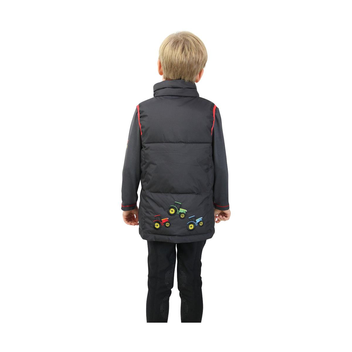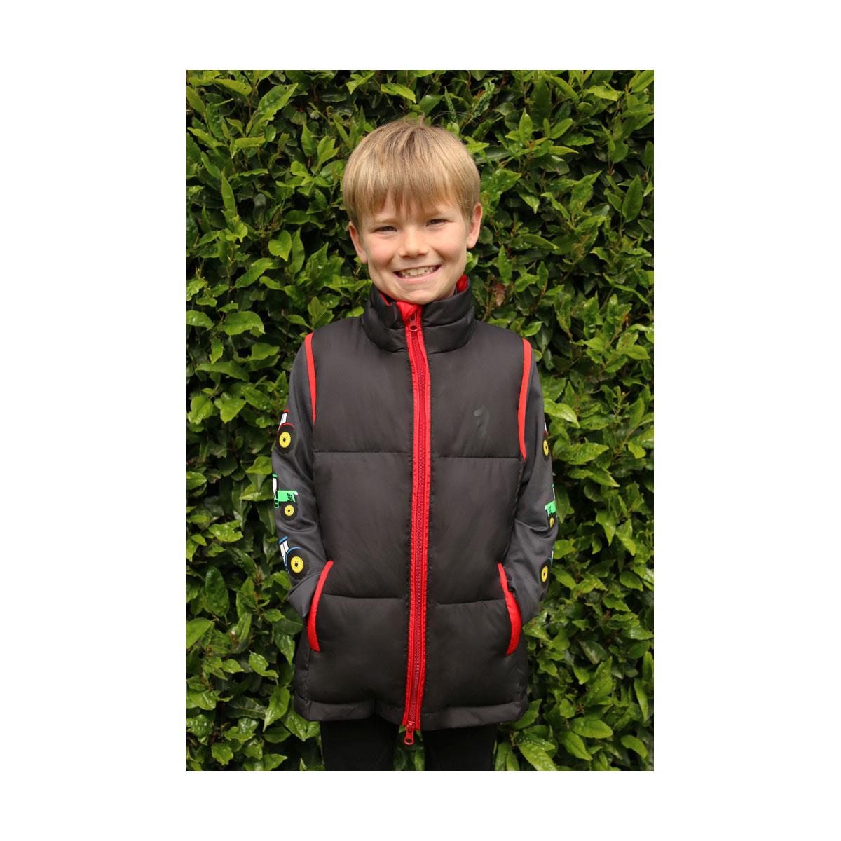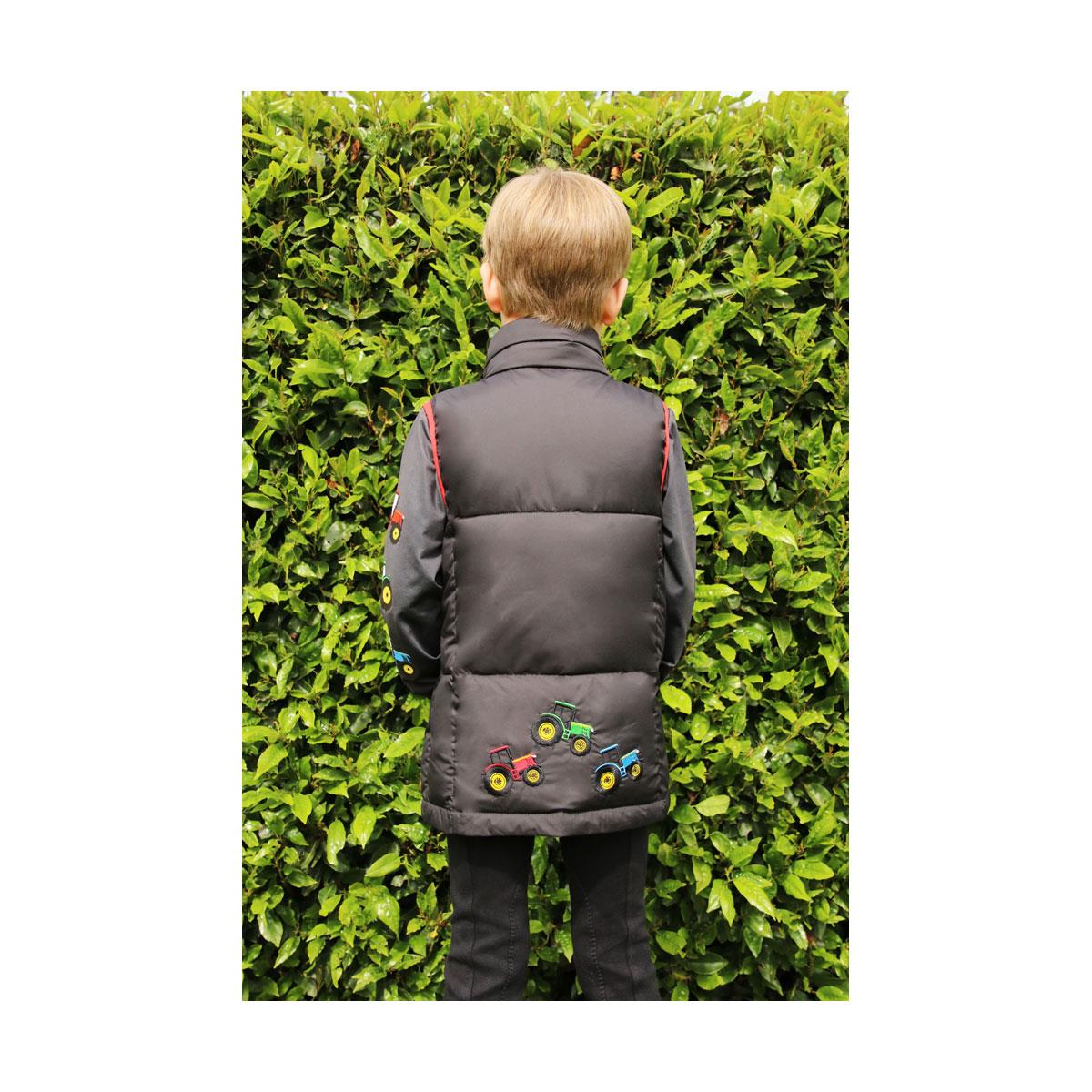 This lightweight padded gilet is perfect as an extra layer when the weather takes a turn. The faux down and feather free filling works to trap warmth and heat to keep your child snug. Featuring a two-way zip for easy adjustment when in the saddle and three coloured tractors on the back. Completed with hidden pockets, contrasting piping along the zip line and Little Knight emblem on the chest. Complete the look with other matchy items from the range.