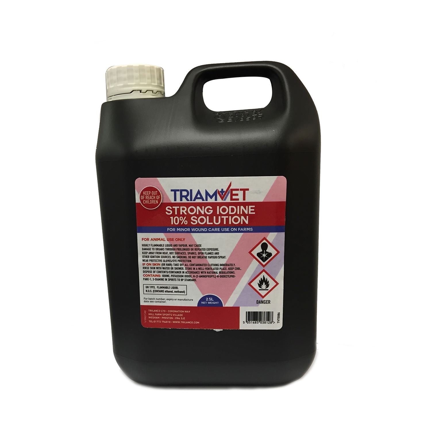 Supplied ready to use. Apply to areas such as navels of newborn lambs and calves and other external areas to manage infections. Contains 10% iodine in an alcohol base.