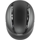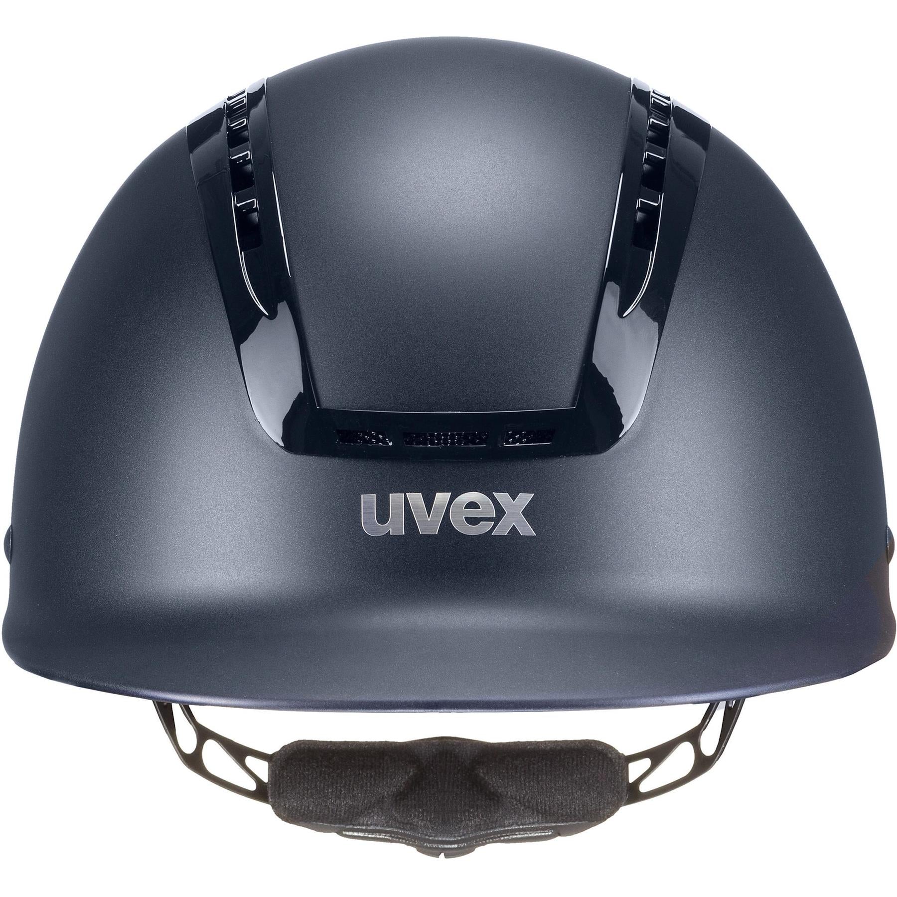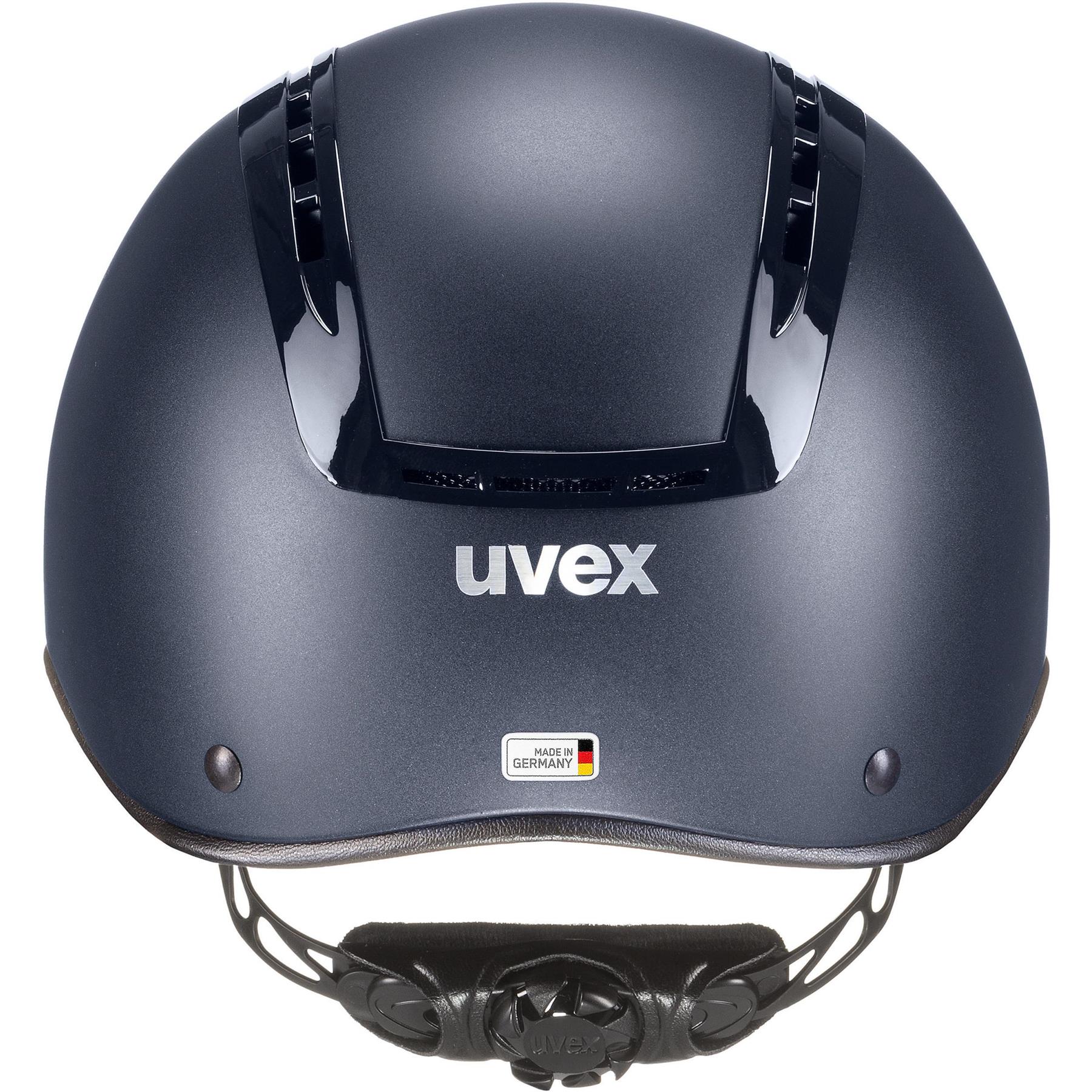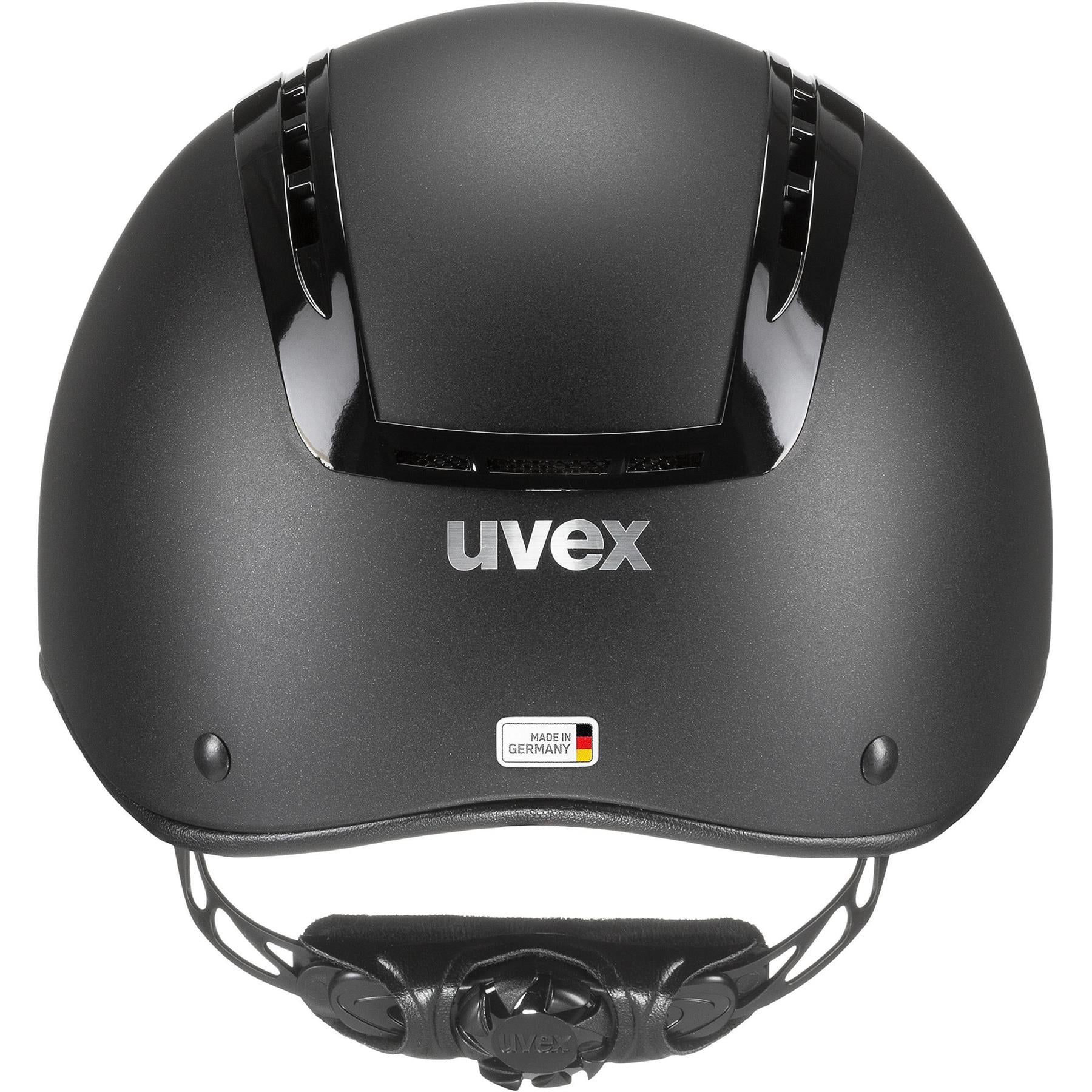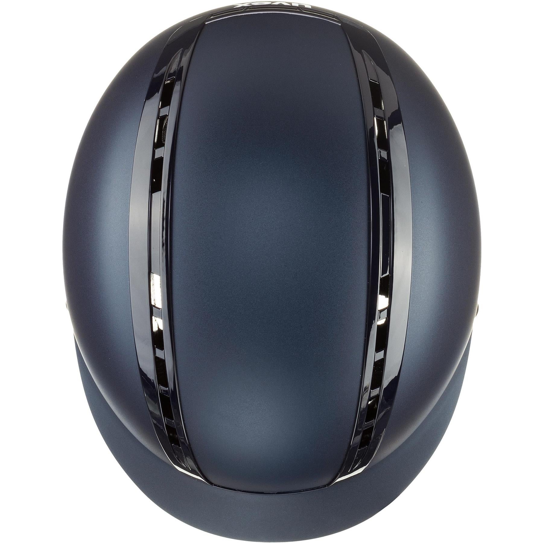 The uvex suxxeed active is the perfect helmet for discerning riders. Luxurious and discreet in appearance, the robust hard-shell helmet impresses both in training and competition with especially effective climate management and a high level of comfort for the wearer. The uvex suxxeed active guarantees supreme safety and comfort. The hard-shell helmet with impact-resistant polycarbonate outer shell and shock-absorbent EPS inner shell has a first-class fit and affords protection on every ride. To avoid heat build-up, the uvex suxxeed active employs a sophisticated ventilation system. Integrated ventilation channels permanently guide fresh air to the inside of the helmet and warm air to the outside. The tried and tested 3D IAS system allows individual size adjustment in height and width. Ensuring that the helmet sits firmly on the head in every situation is the Ring Fast Adapting system with high-quality synthetic leather strap covers.