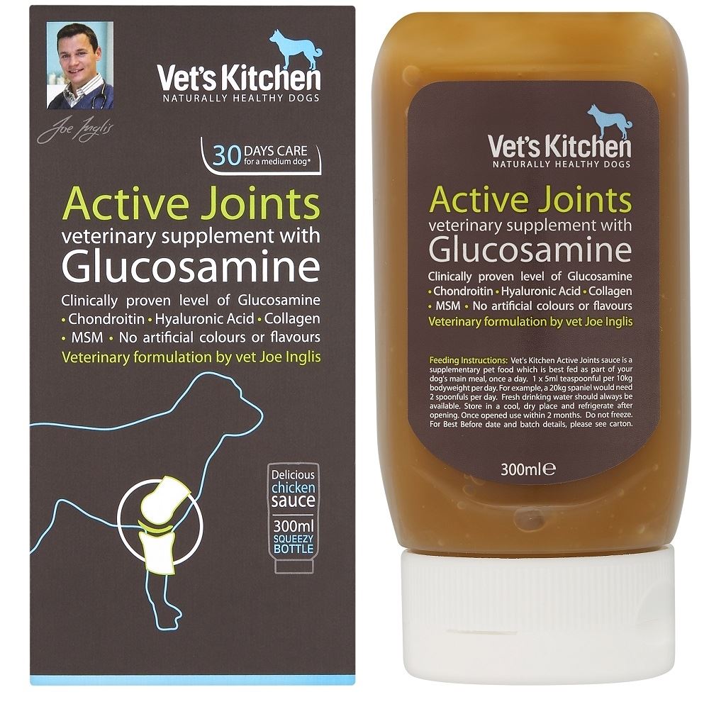 Shop now at Just Horse Riders for Vets Kitchen Active Joints Glucosamine, a remarkable solution to support your dog's joint health. This innovative supplement is not just any ordinary product; it's a delicious chicken sauce that your dog will love. It's packed with essential components like glucosamine, chondroitin, MSM, hyaluronic acid, and collagen, all known to promote joint health and mobility.