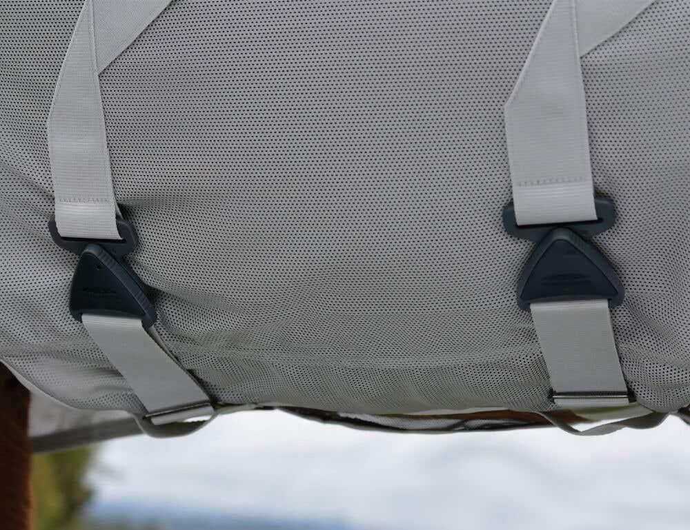 Innovative features like the Twist n' Lock front closure system simplify fitting while reducing risk of snagging on hay nets or fencing. A memory foam wither pad conforms to your horse’s shape for unmatched comfort and reduced pressure. The detachable neck cover is easily secured with Velcro for flexible protection based on the weather.