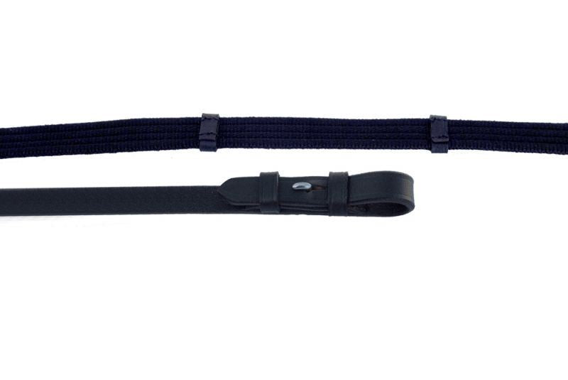 Economy leather traditionally styled continental reins made using durable webbing material with leather stoppers at regular distances. They feature hook stud billets with stainless steel fittings.Length 54", Width 5/8"