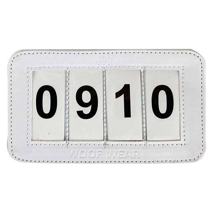 Woof Wear�s new 4 Digit Dressage Number Holder is a great way of displaying numbers when competing. The numbers are printed on tough waterproof fabric which is cleverly folded allowing changing numbers is effortless in between classes. Riders love how easy it is to change numbers and fix the holder to the Saddle Cloth � Safety pin fixes holder to saddle cloth � 4-digit Numbering � Unique folding number system � Waterproof and rip proof numbers � Elasticated pouches to enable easy number change � Sold Singly